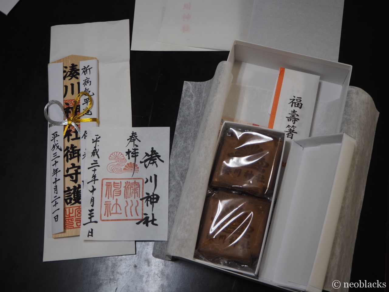 お供え物の中身は名物の瓦煎餅!(懐かしい٩(^‿^)۶)と祈祷木札(きとうきふだ)でした。お食い初めの方も同じ紙袋でしたので、お箸も付いていました。